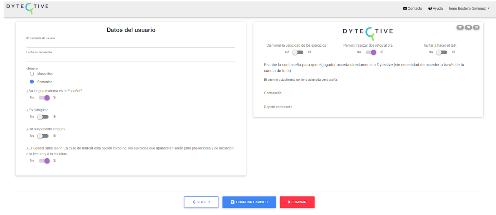 En la siguiente pantalla, podrás editar los datos del usuario y sus preferencias a la hora de jugar.