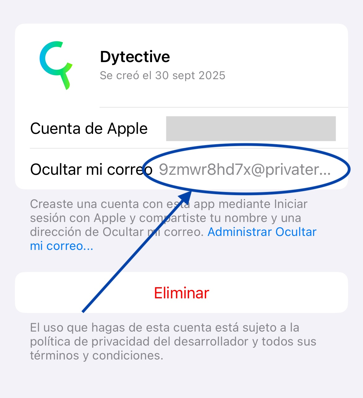 ¿Cómo comprobar qué correo asignó Apple a tu cuenta de Dytective?