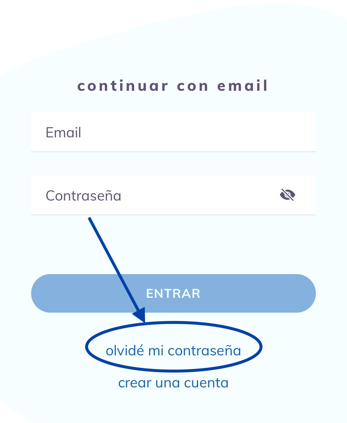 Seguidamente, pulsa “olvidé mi contraseña”.