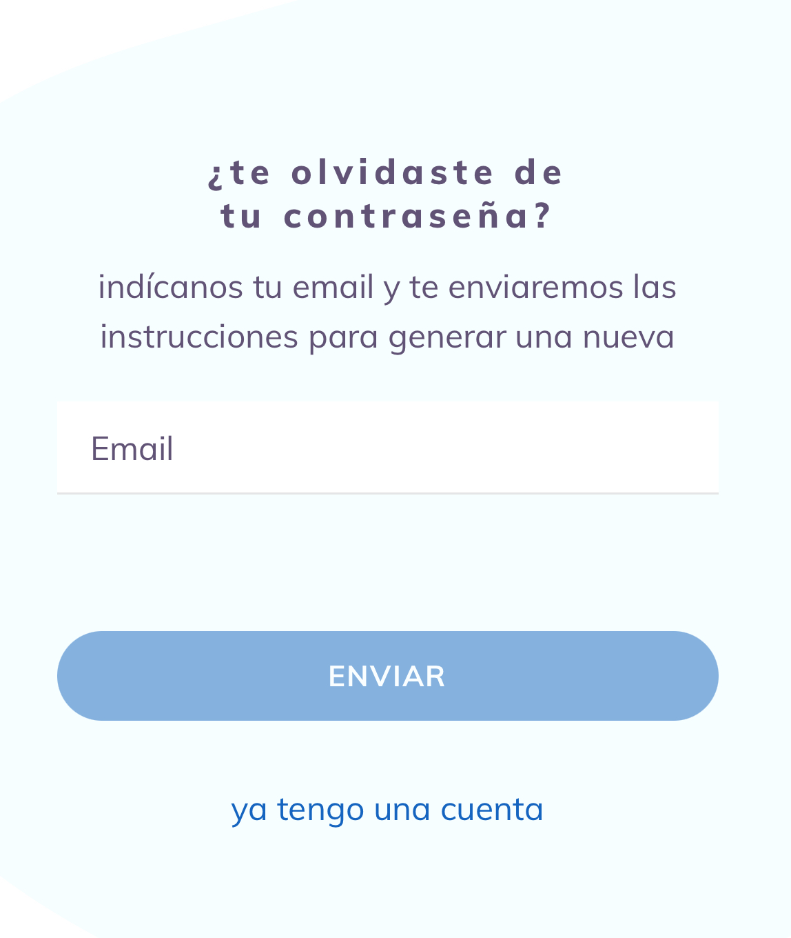 En la nueva pantalla, introduce el correo asociado a tu cuenta y pulsa Enviar.
