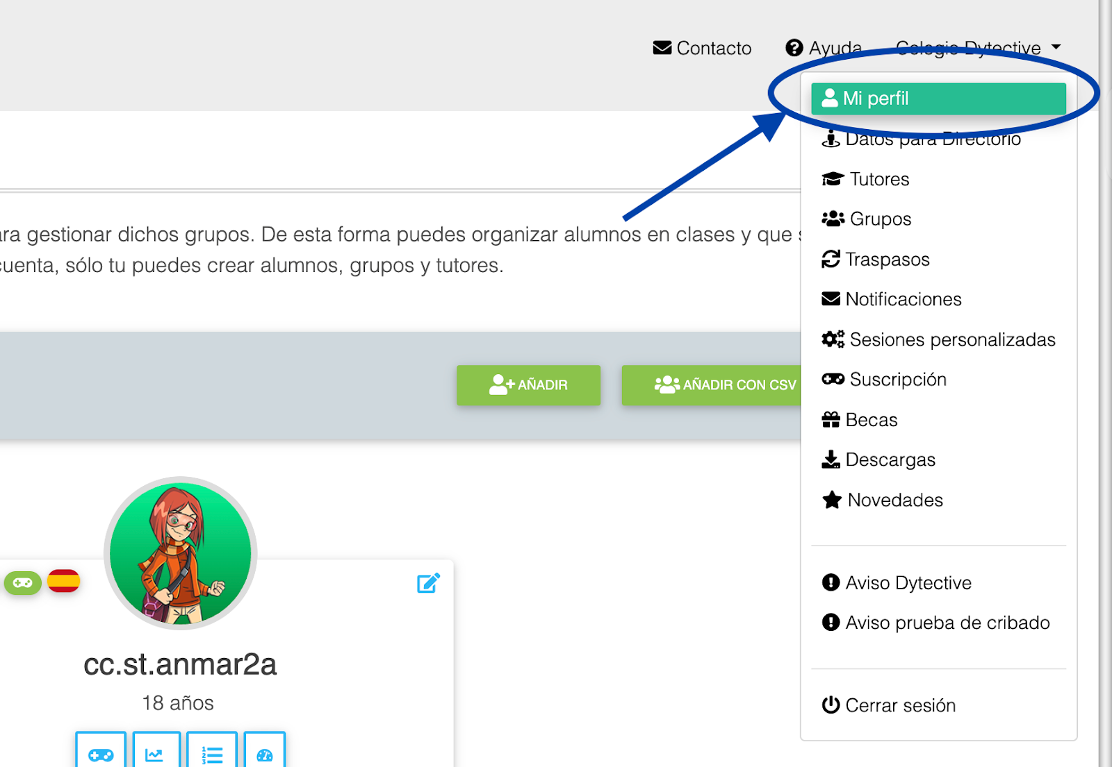 2. Ir al apartado de “Mi perfil” de tu menú de usuario.