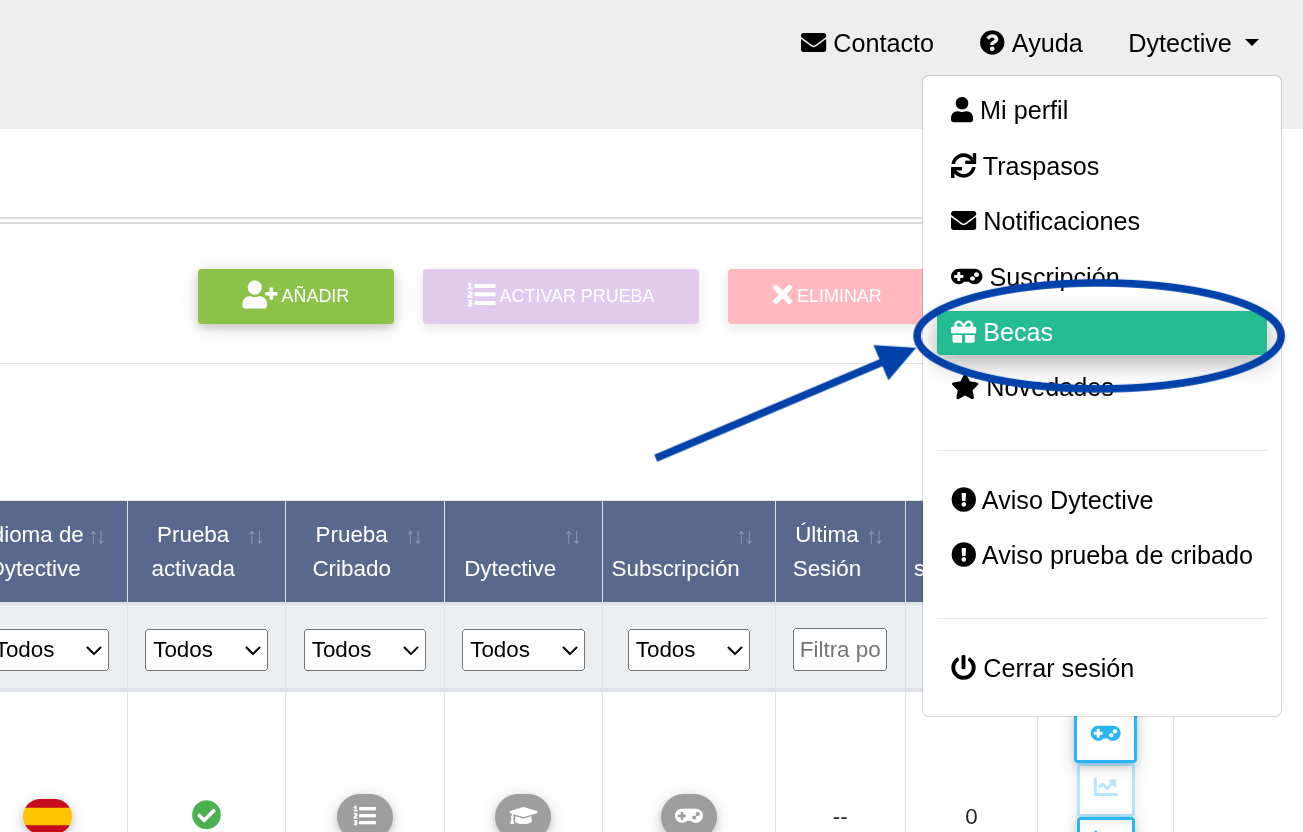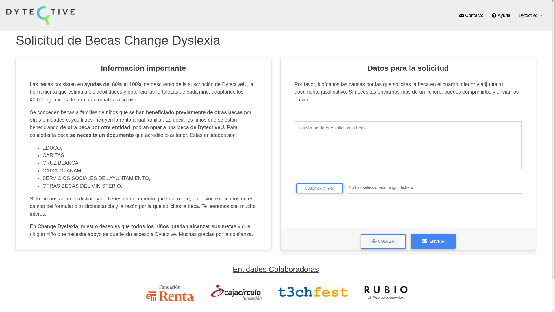 En la siguiente pantalla encontrarás información sobre cómo pedir una beca Dytective: