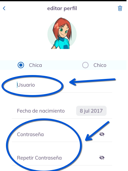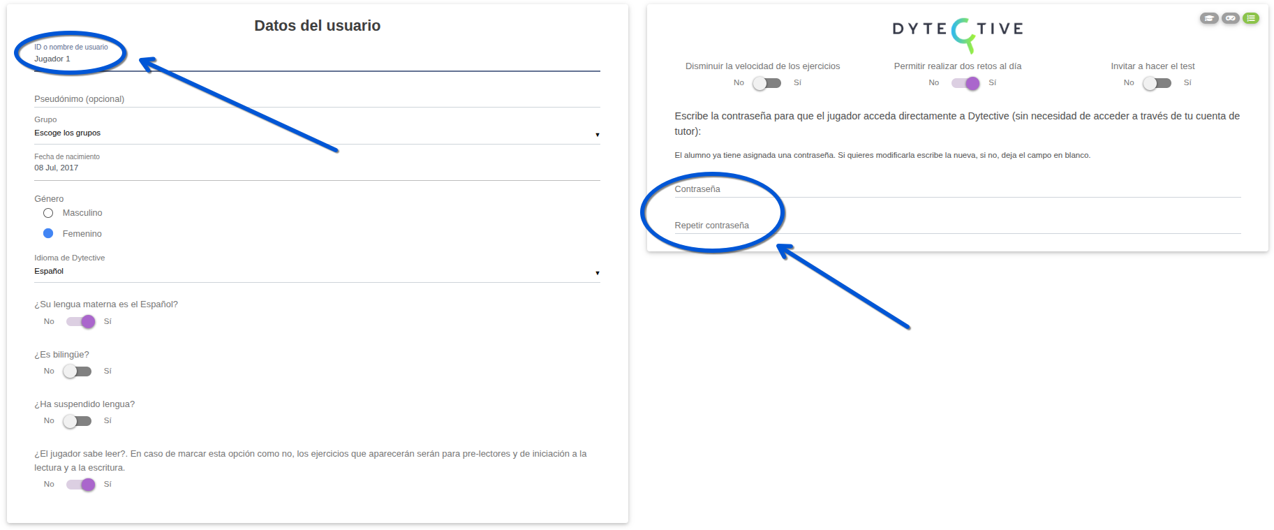 En la siguiente pantalla puedes consultar o editar los datos de acceso del jugador: