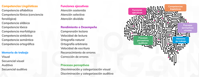 Dytective trabaja 24 habilidades cognitivas que se personalizan automáticamente según el rendimiento del niño. Al final de cada sesión, se genera un informe que desglosa las habilidades trabajadas.