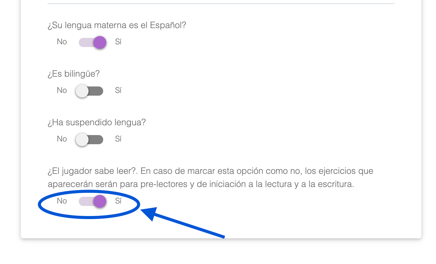 Allí encontrarás la pregunta: “¿El jugador sabe leer?”.