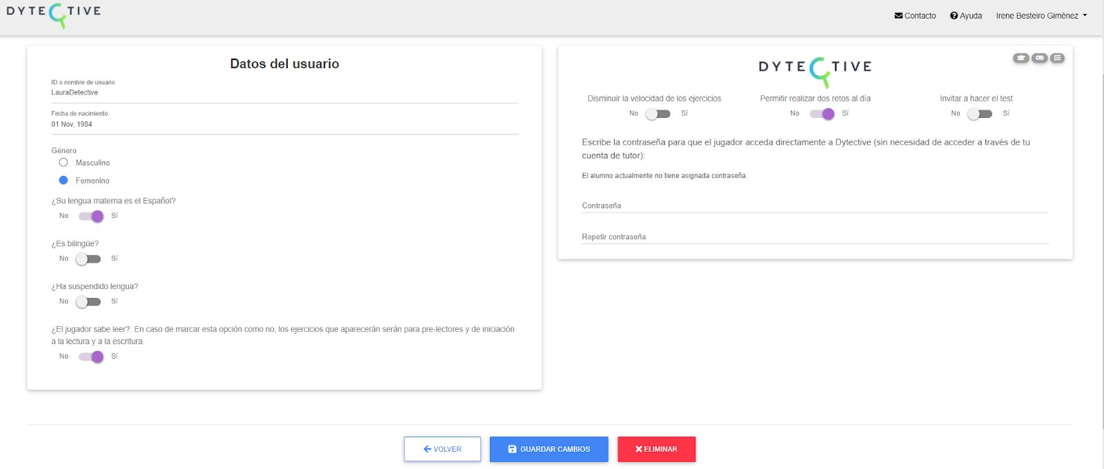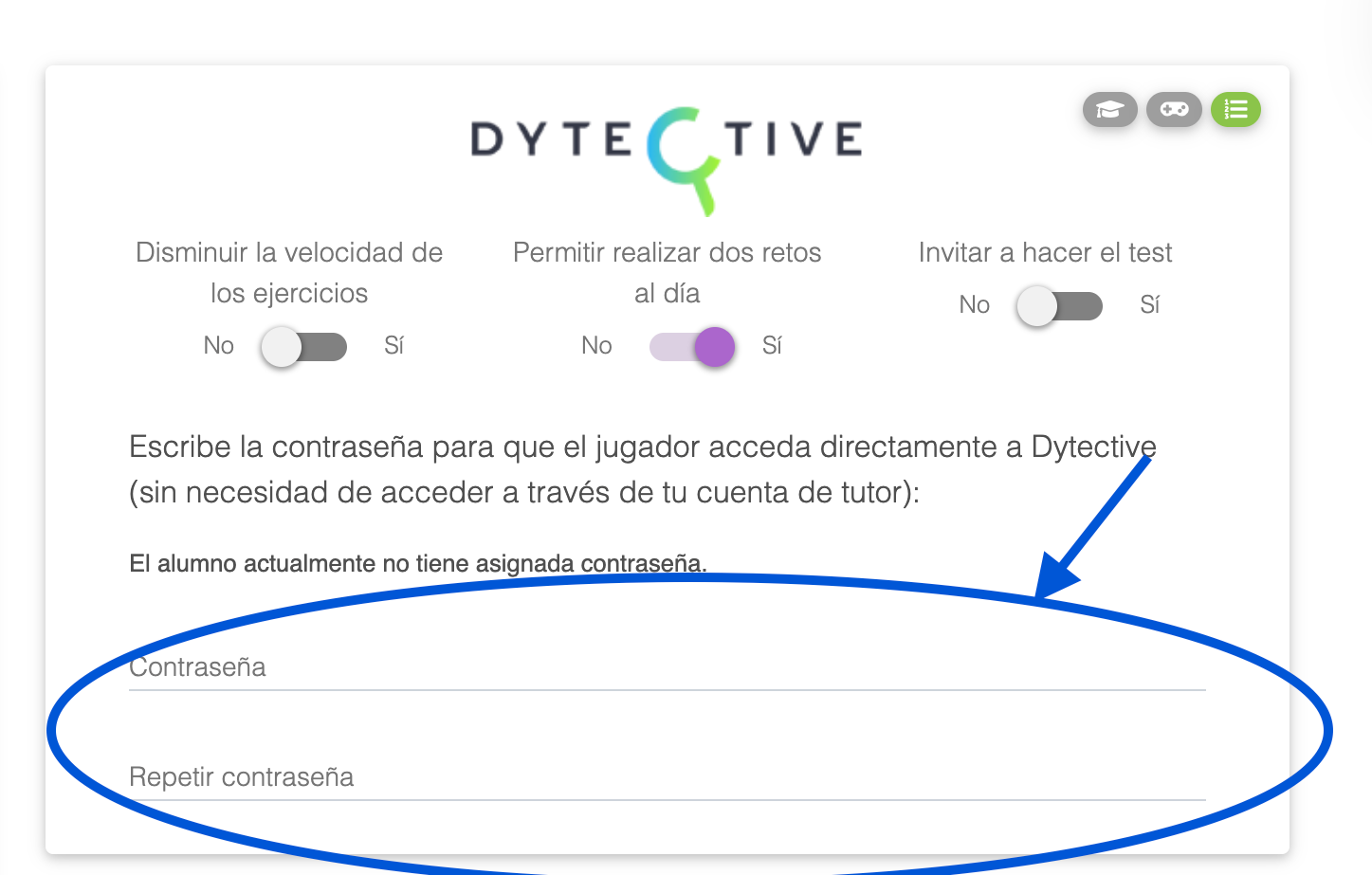 En la parte derecha de la pantalla encontrarás la opción para asignar o cambiar la contraseña del Usuario Jugador.
