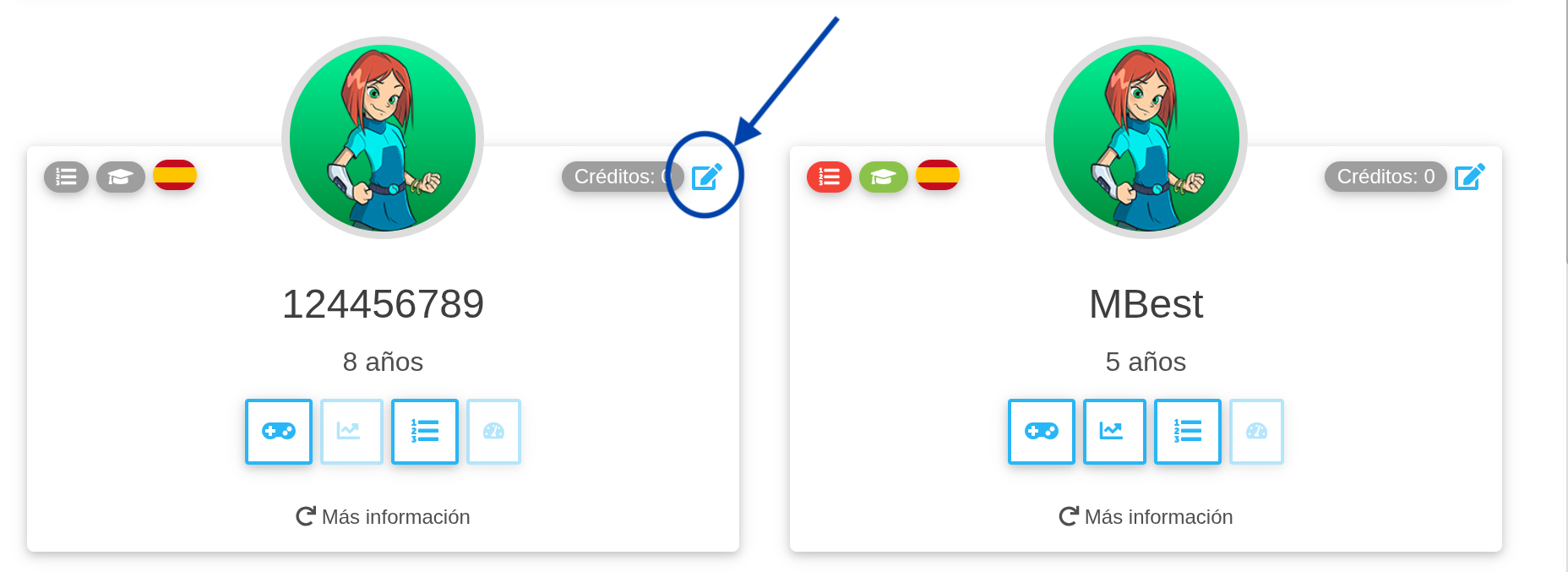 Modo “Vista Tarjetas”: pulsa el icono de la esquina superior derecha de la tarjeta del usuario (con forma de lápiz).