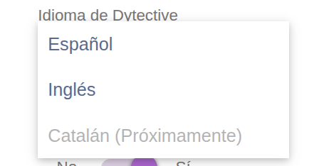 4. Idioma: Dytective está disponible en español y en ingles. Pronto estará disponible en catalán. Para seleccionar el idioma de los ejercicios de Dytective: