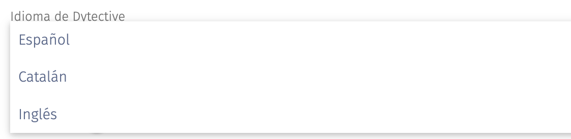 4. Idioma: Dytective está disponible en español, en catalán y en ingles. Para seleccionar el idioma de los ejercicios de Dytective: