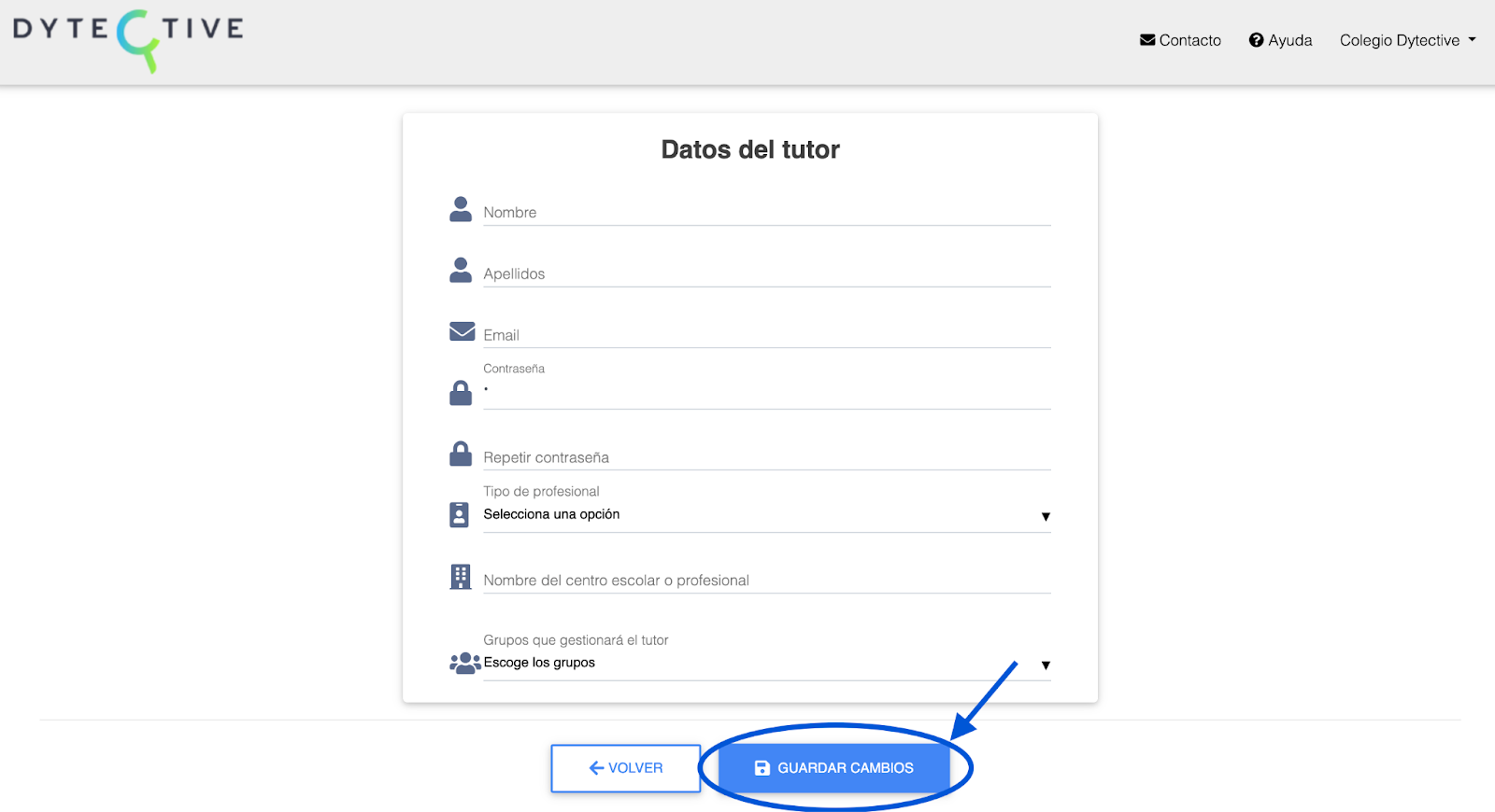 Importante: el tutor no puede estar dado de alta con ese correo electrónico en ninguna otra cuenta de Dytective, ya sea personal o de otro colegio.