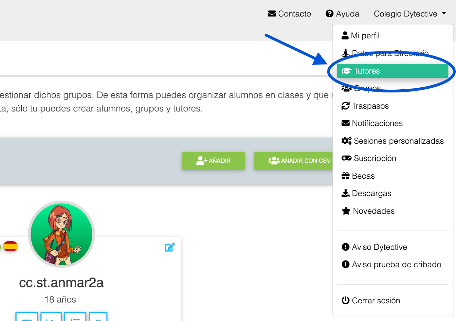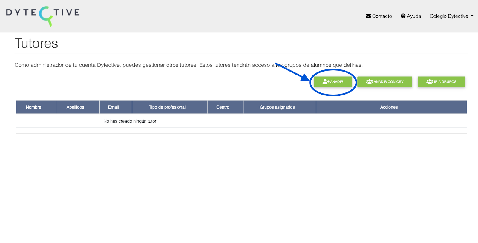 3. Añade tutores de manera manual (pulsando “Añadir”) o de manera colectiva, usando “Añadir con CSV”.