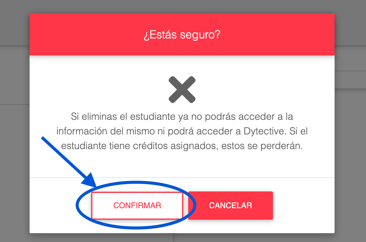 Tras pulsar “Eliminar” saldrá este aviso. Si estás segura de que quieres continuar, pulsa “Confirmar”: