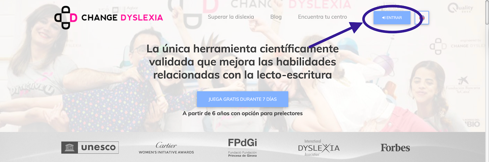 Entra en www.changedyslexia.org y pulsa “Entrar” o entra en www.changedyslexia.org/signin directamente.