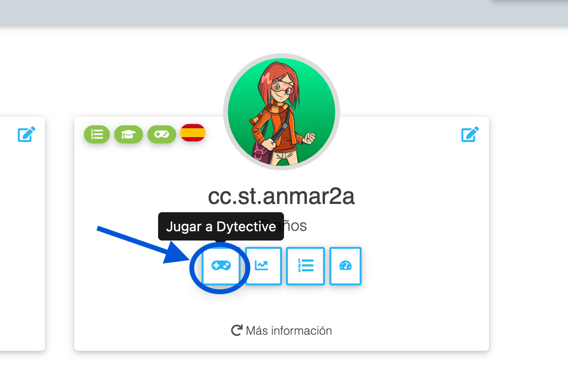 El tutor hace clic en “Jugar” sobre el perfil del estudiante.