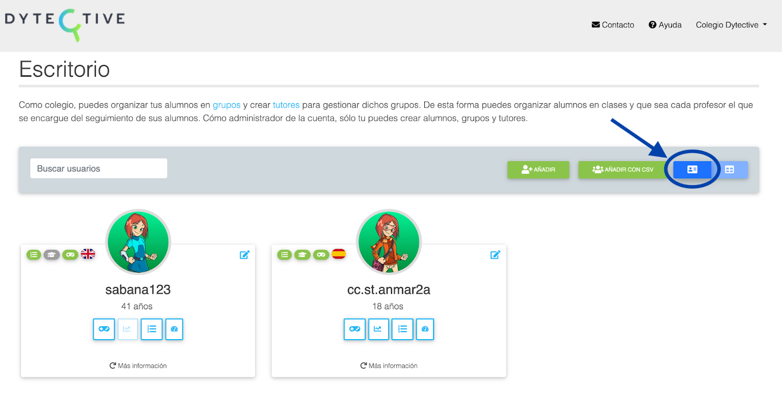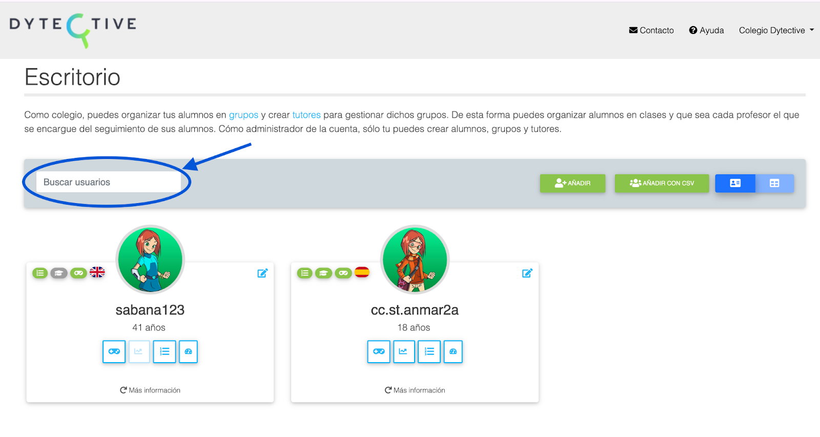 Para localizar rápidamente a cualquier estudiante que hayas creado: