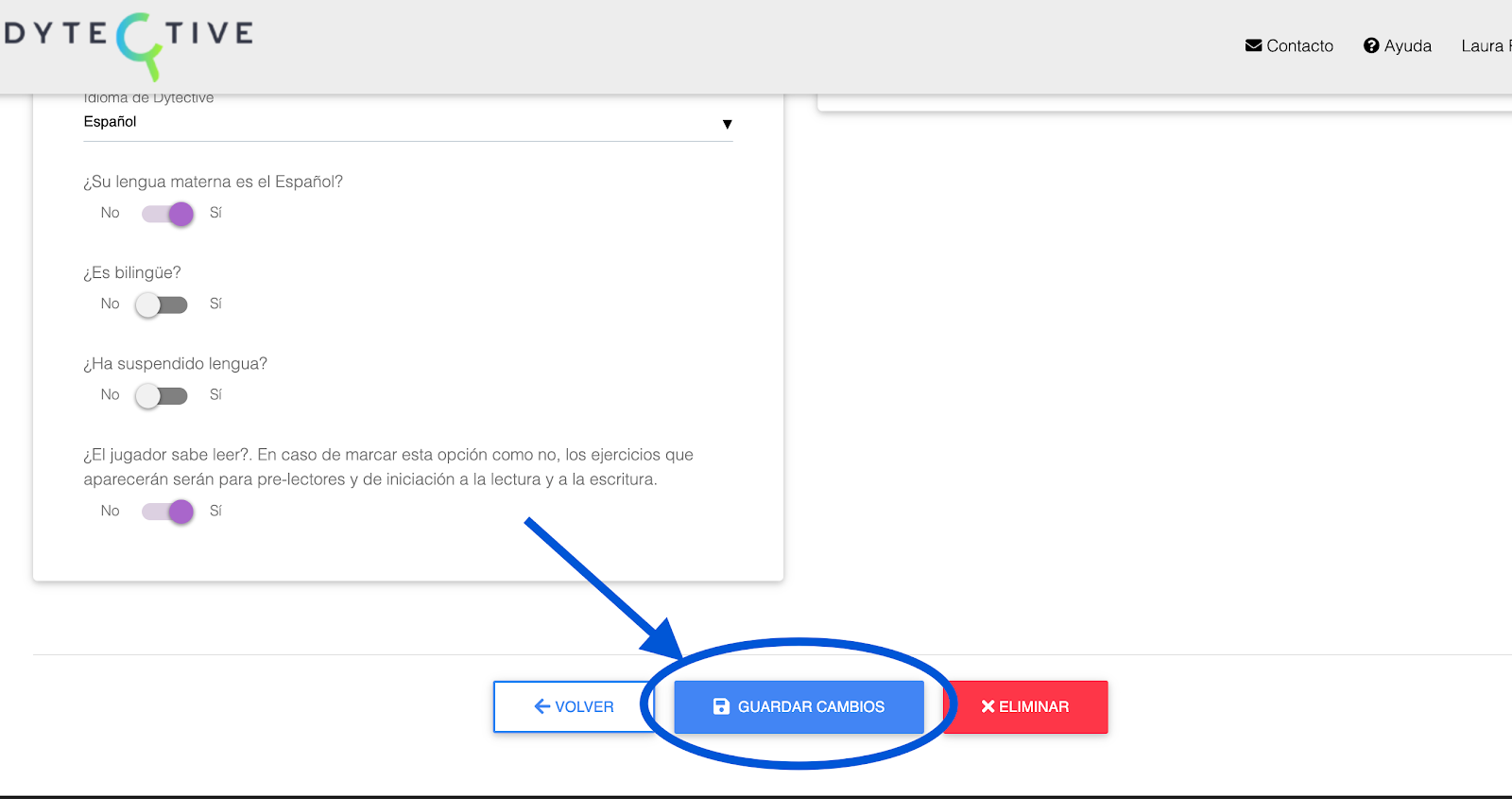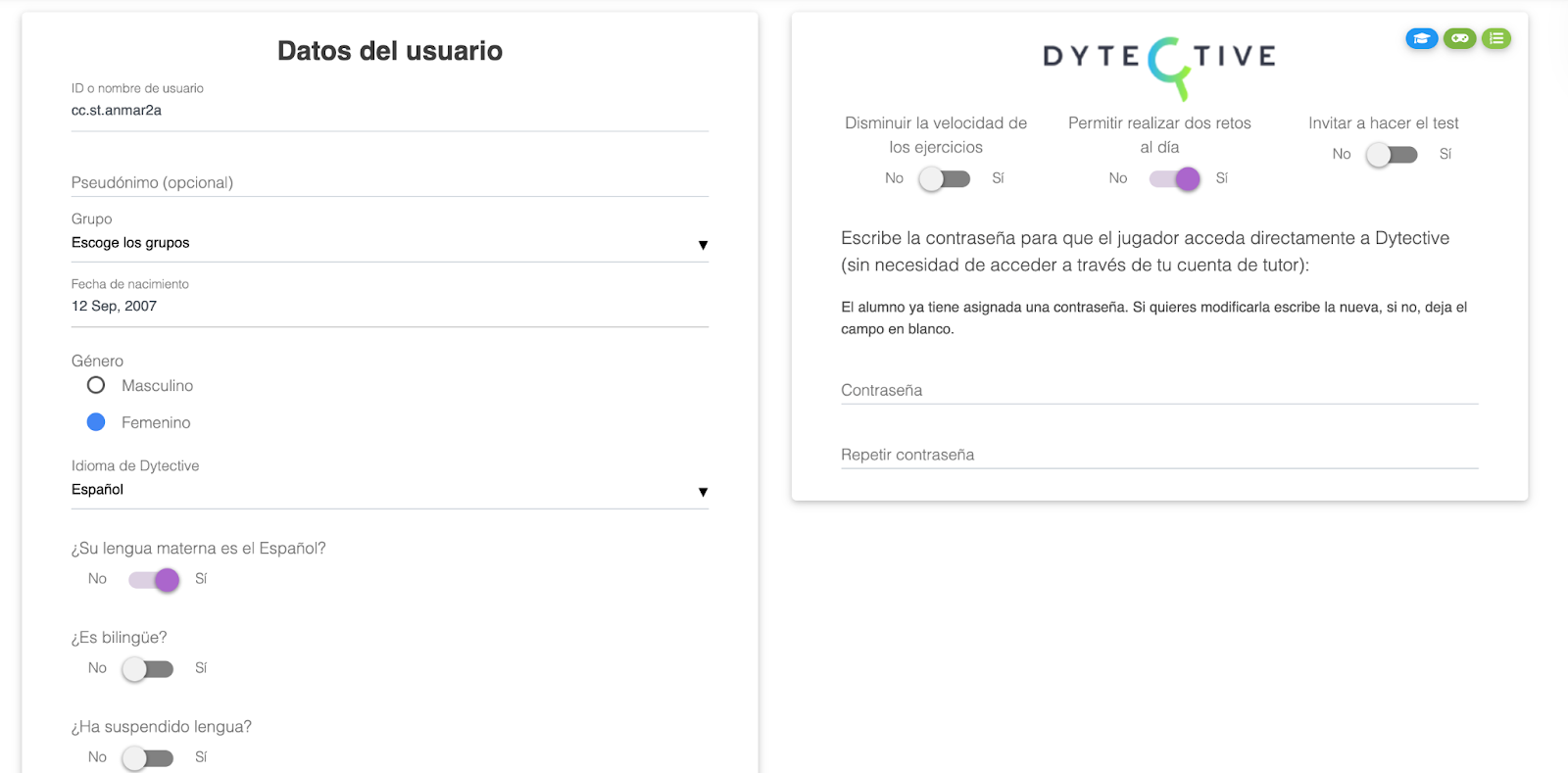En la siguiente pantalla, podrás editar los datos del usuario y sus preferencias a la hora de jugar.