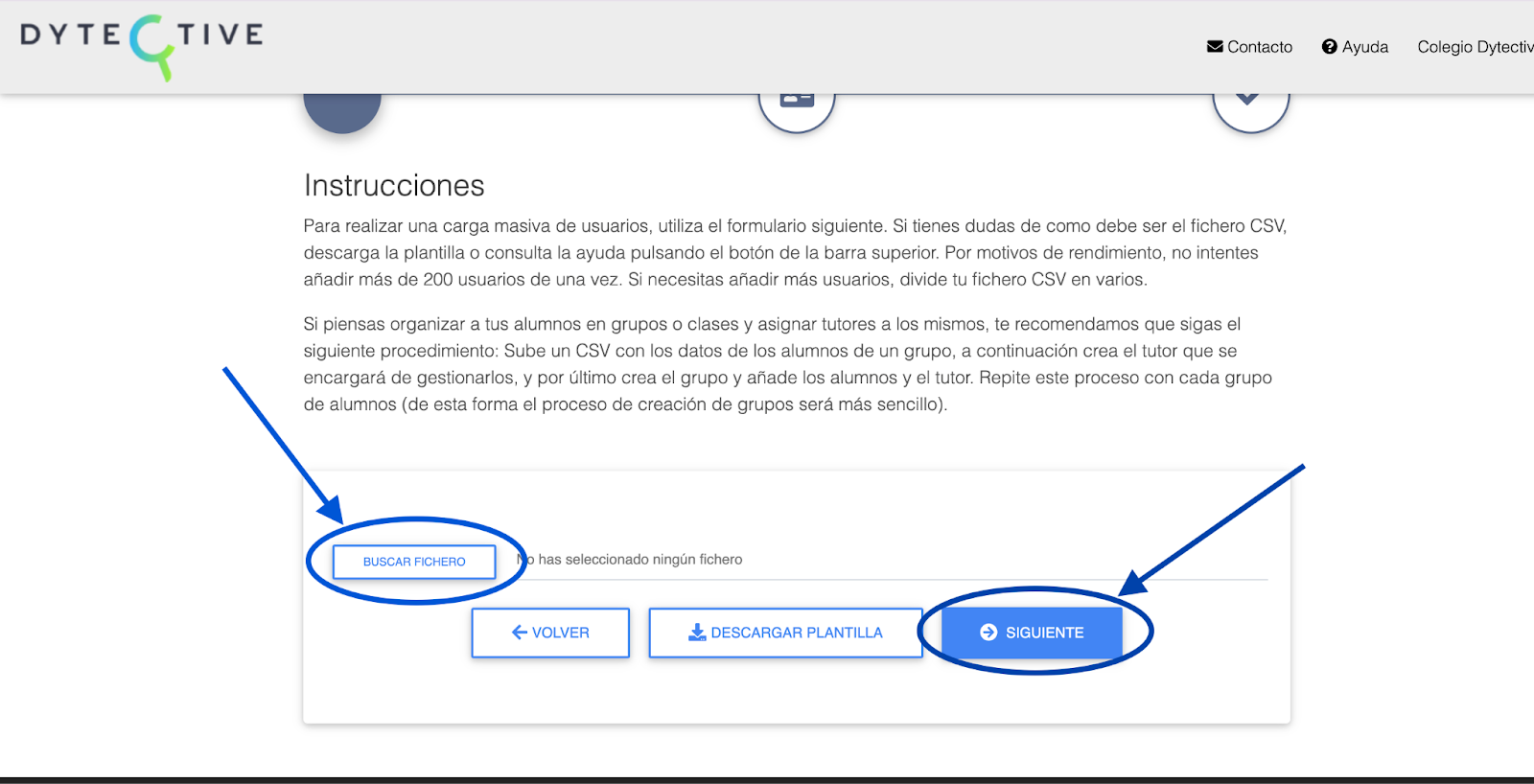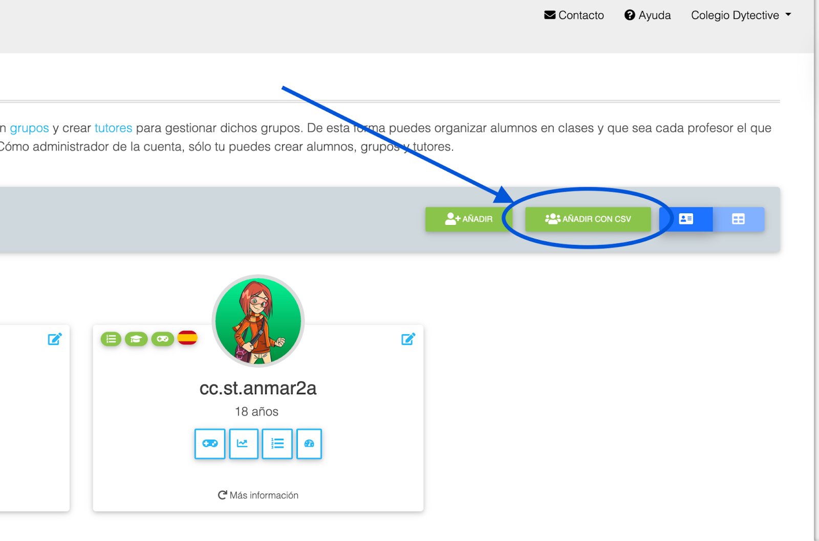 Si quieres editar los datos de varios alumnos a la vez (por ejemplo, cambiar el grupo al empezar un nuevo curso) puedes hacerlo a través del archivo CSV. Para ello, tienes que seguir los siguientes pasos: