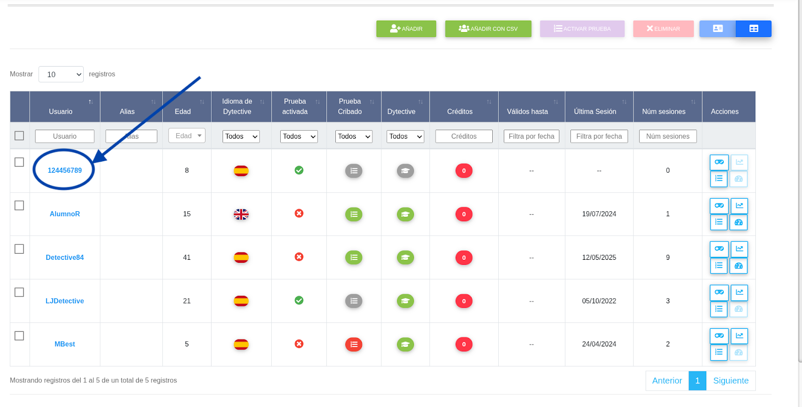 2. Editar estudiantes a través del CSV