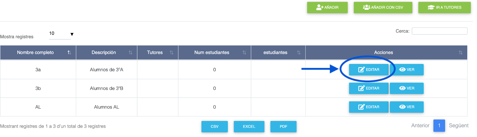 Para editar grupos puedes hacerlo también uno a uno, o editarlos a través de un CSV. Para editarlos manualmente tendrás que seguir los siguientes pasos:
