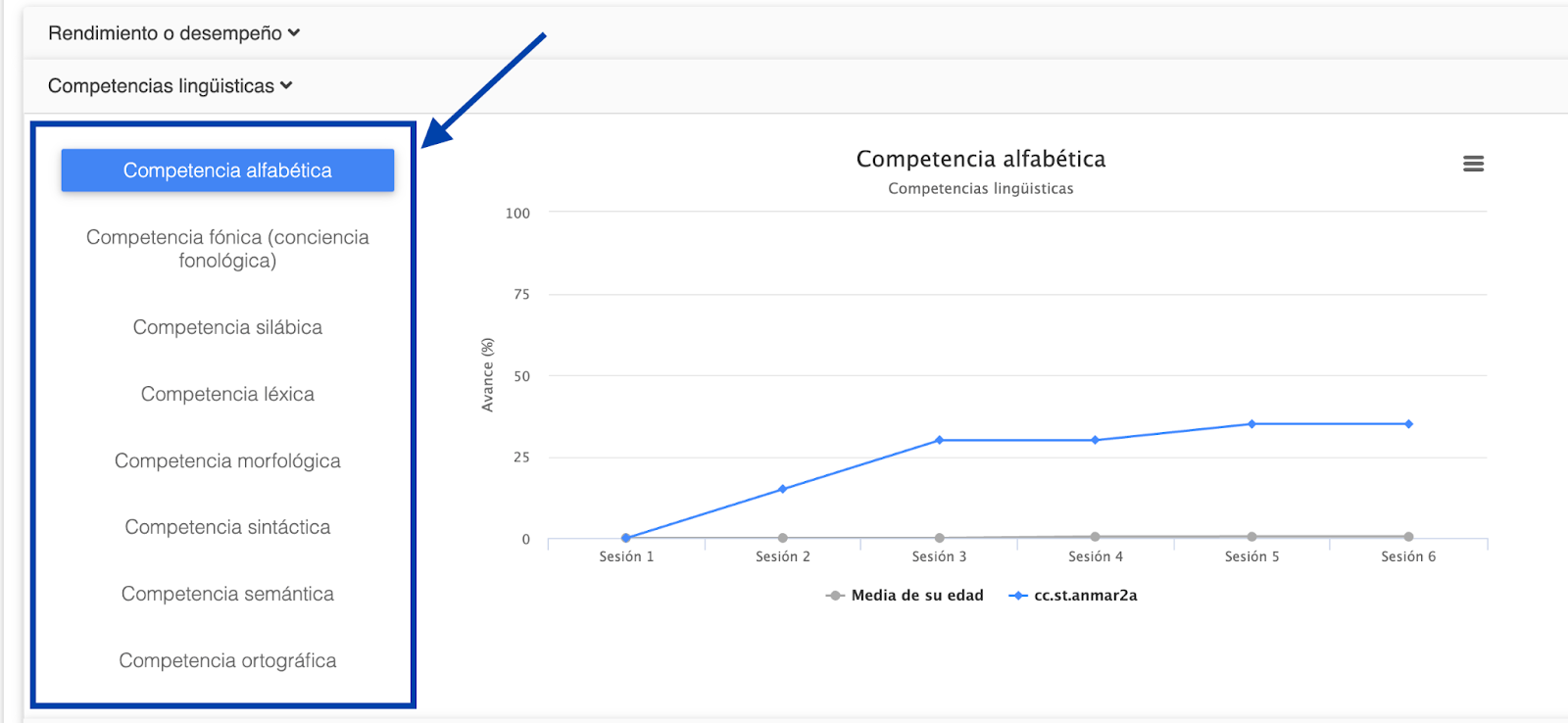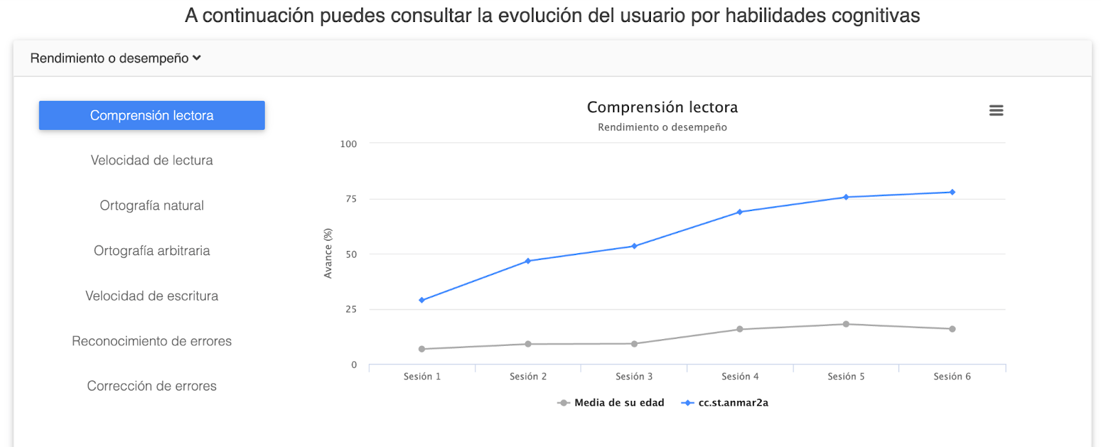 En este apartado se muestra la evolución del estudiante a lo largo del tiempo en las habilidades trabajadas.