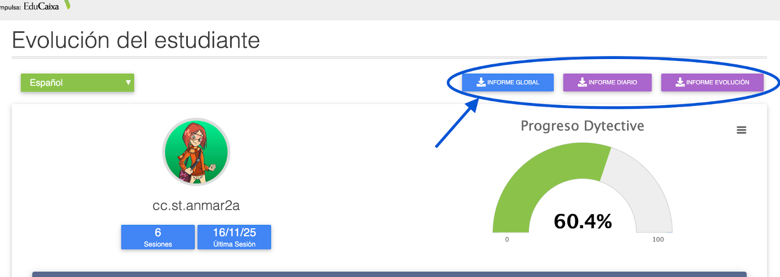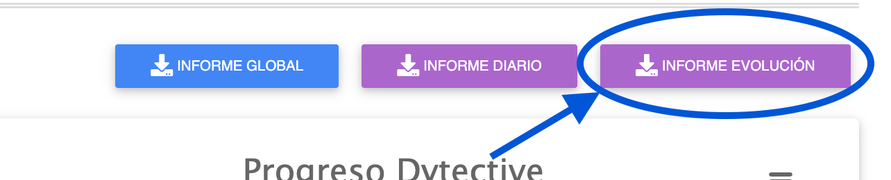 Pulsa el botón “Informe evolución”, situado en la parte superior derecha del apartado “Evolución”.