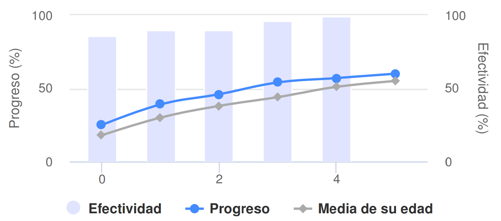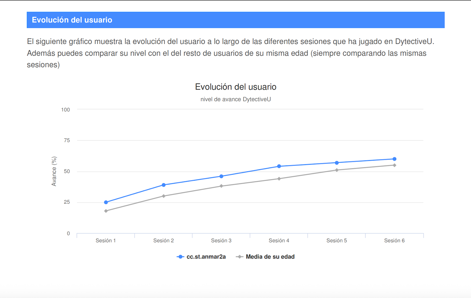 La línea gris representa la evolución media de los usuarios de Dytective de la misma edad.